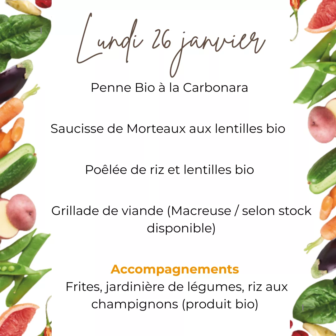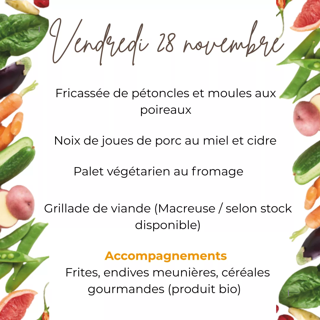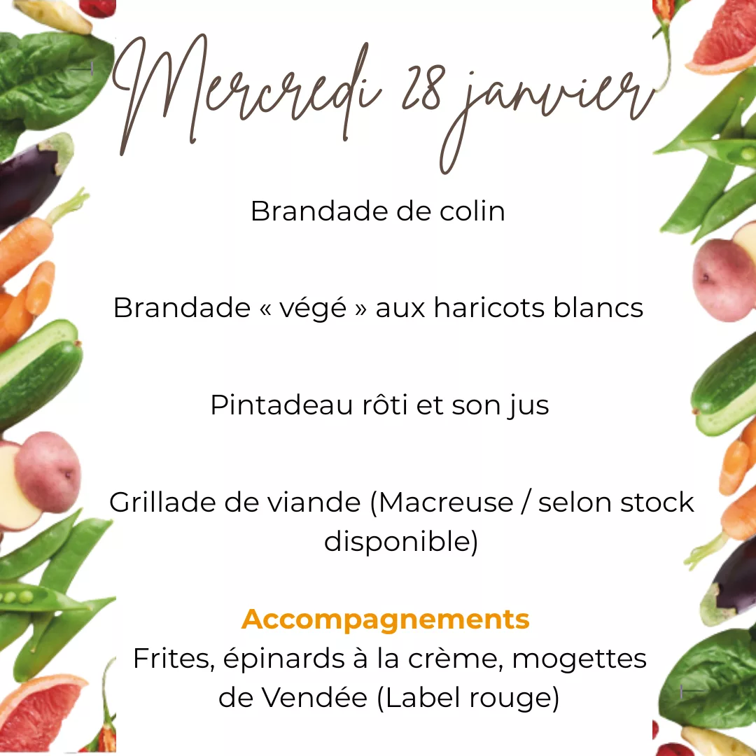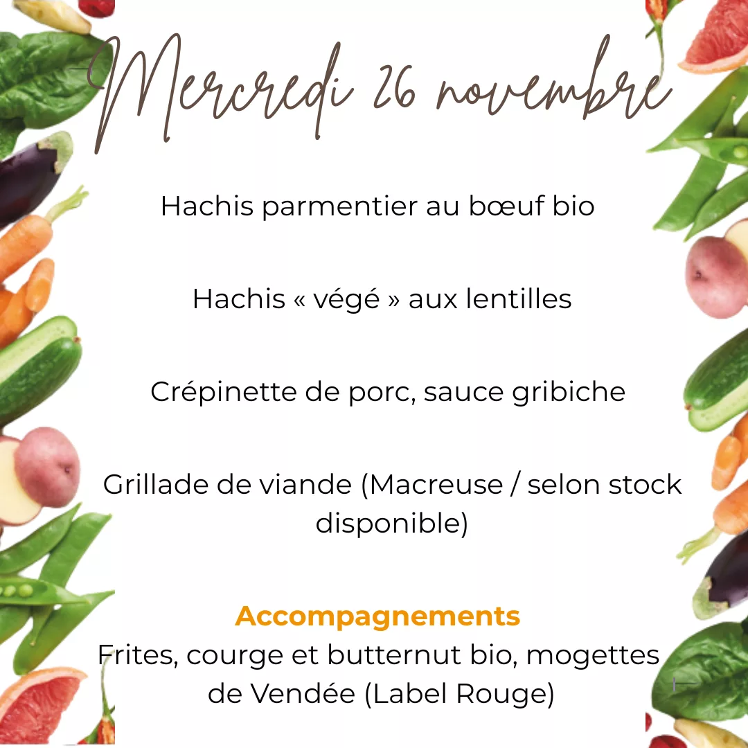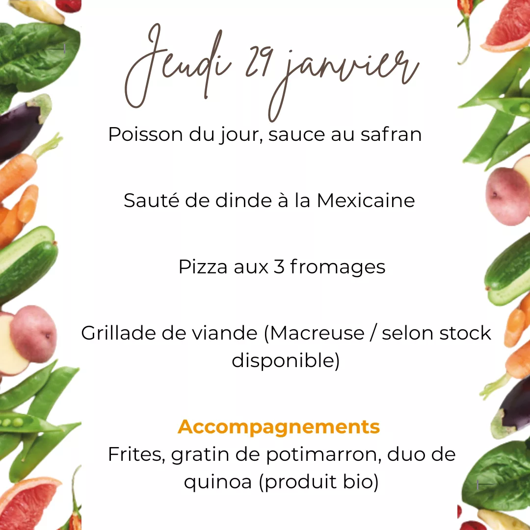 - 1 boisson (eau en 50cl ou vin en 25cl)